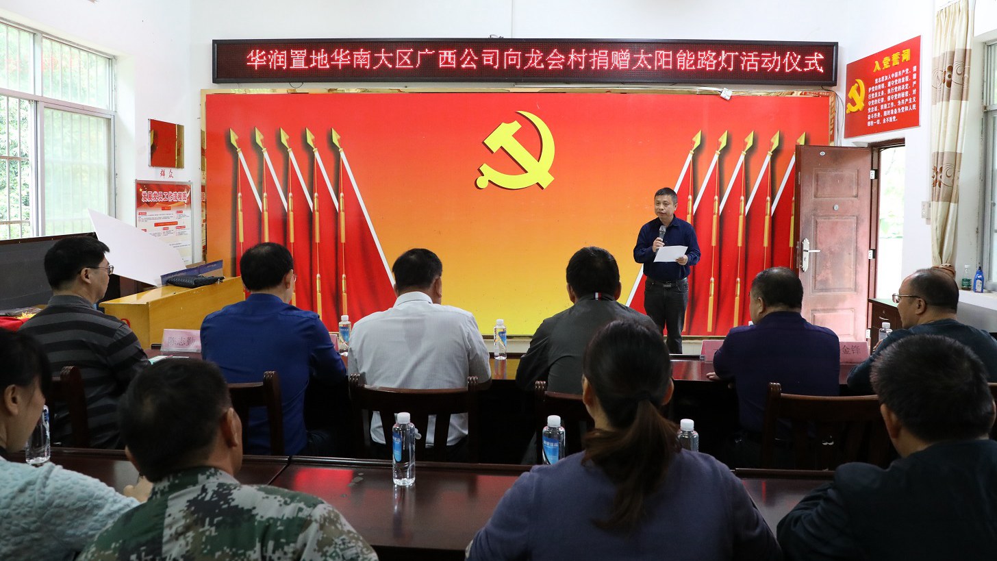 10月14日,南寧市自然資源局?jǐn)y愛心企業(yè)華潤置地華南大區(qū)廣西公司到我院結(jié)對幫扶貧困村布泉鄉(xiāng)龍會(huì)村開展扶貧捐贈(zèng)活動(dòng),向龍會(huì)村捐贈(zèng)一批價(jià)值20萬元的太陽能路燈,助力鄉(xiāng)村振興。