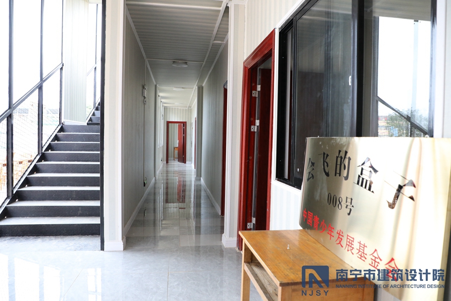 隆安縣育英村小學的宿舍樓“會飛的盒子008號”是該基金會在廣西落地的首個項目,由資深金融投資人杜英女士通過中國青少年基金會專項資金出資50萬元建造,故該項目名為“杜英愛心啟航樓”。