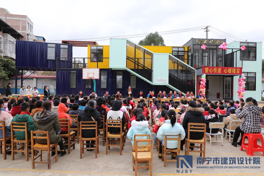 12月17日,寒風瑟瑟,但在隆安縣古潭鄉育英村小學的校園內卻是暖意融融,歡樂不斷。當天上午,由我院無償設計的育英村小學宿舍樓“會飛的盒子008號”正式揭牌啟用,可為路途遙遠的學生們提供一個溫馨的居所。